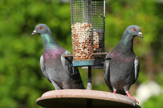 I have a hanging feeder for the smaller birds and the pidgeons have worked out a way of landing on it and eating all the food on it it is quite comical to see and they don’t give up on it