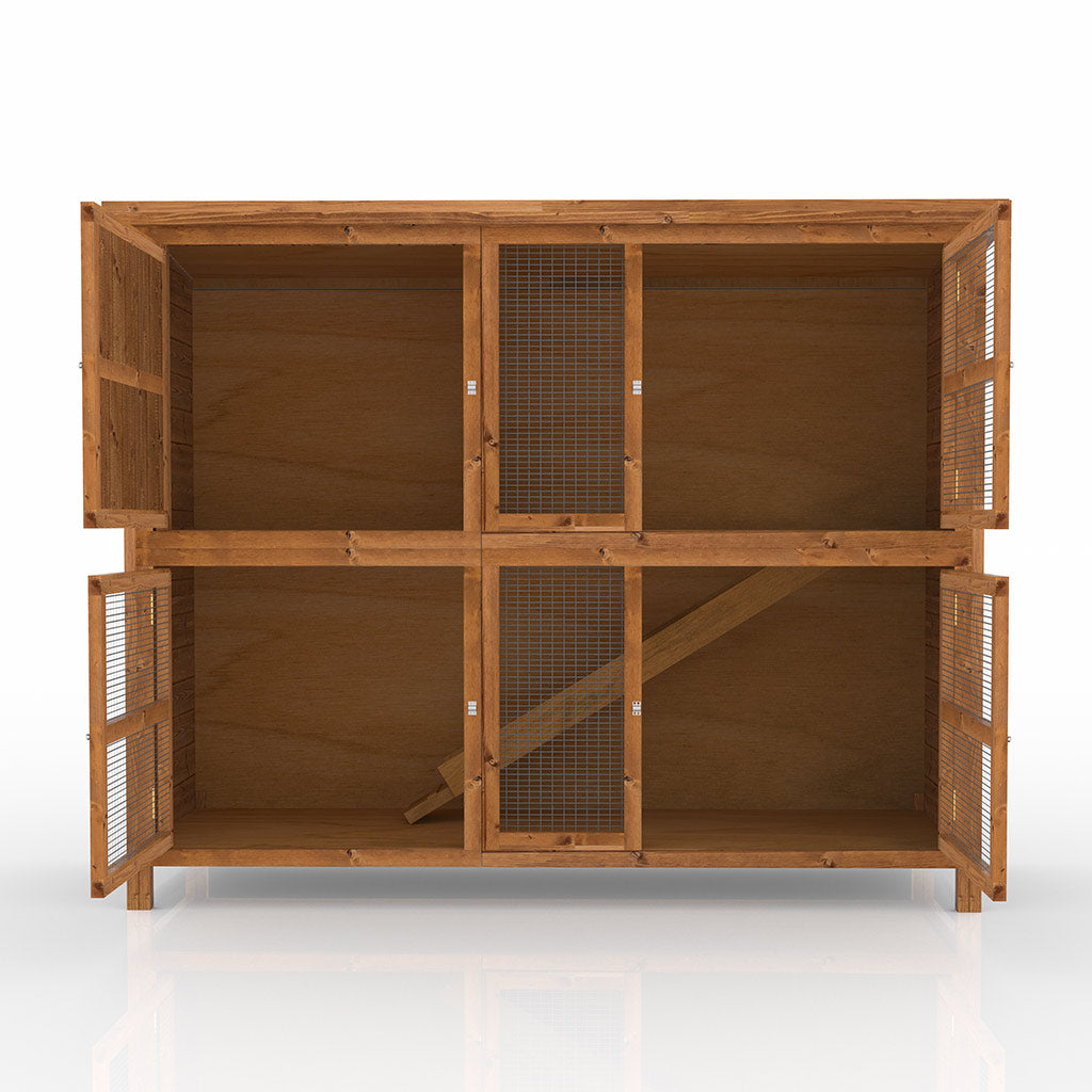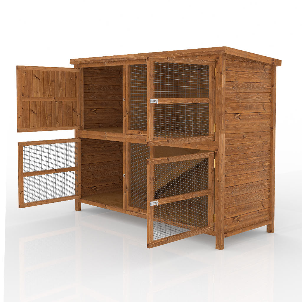 The hutch is built with 10mm thick Forest Stewardship Council (FSC) timber panels, making it extremely sturdy and durable. It’s designed to withstand different weather conditions, providing a safe and secure home for your pets year-round. Because we hand make all our own products if you ever need a spare part your covered under 5 year guarantee.