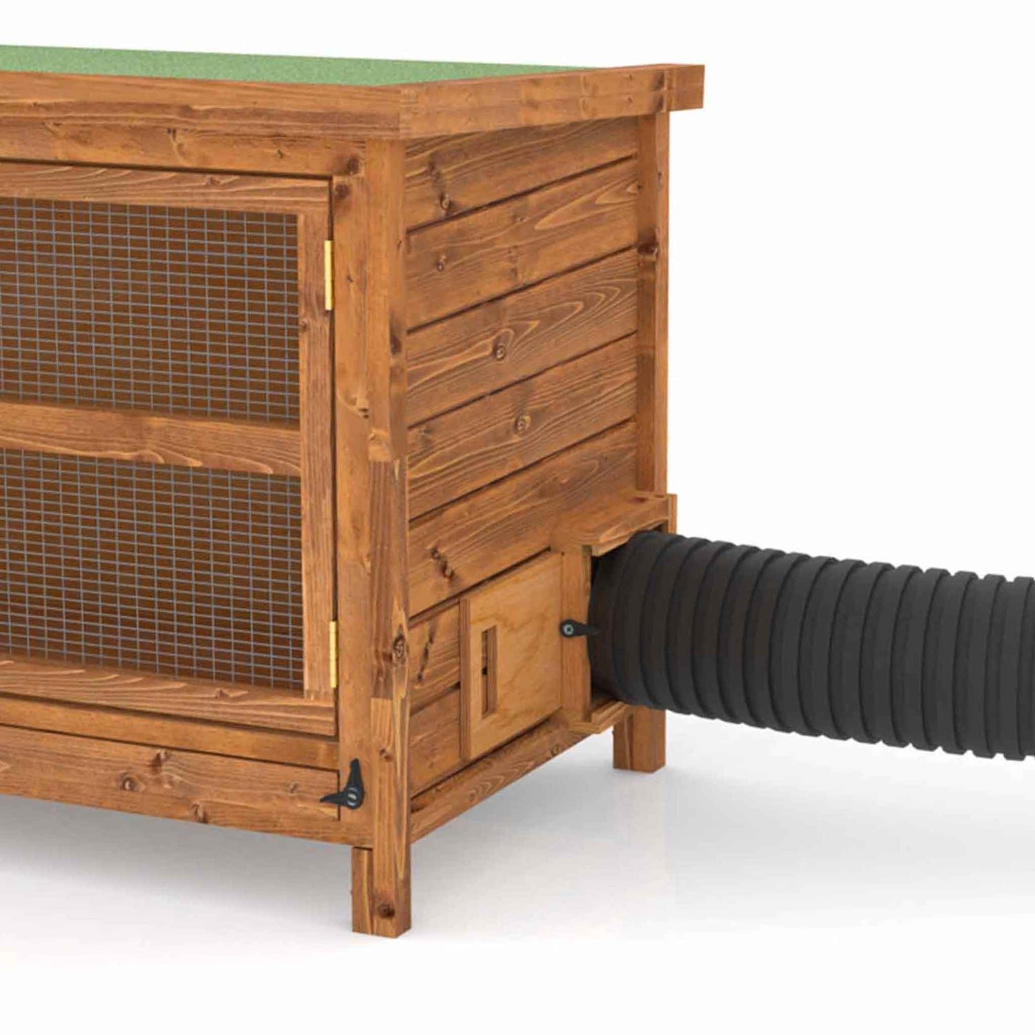 The hutch is built with 10mm thick Forest Stewardship Council (FSC) timber panels, making it extremely sturdy and durable. It’s designed to withstand different weather conditions, providing a safe and secure home for your pets year-round. Because we hand make all our own products if you ever need a spare part your covered under 5 year guarantee.
