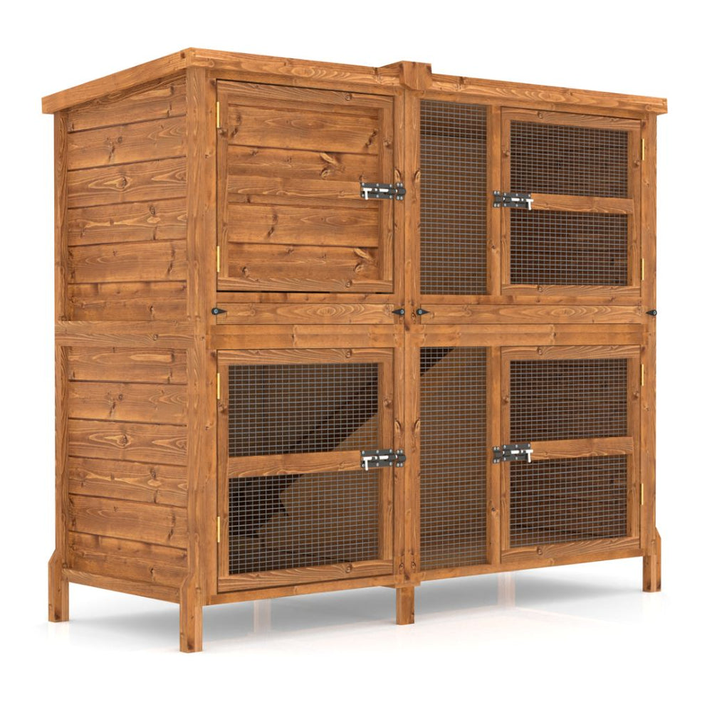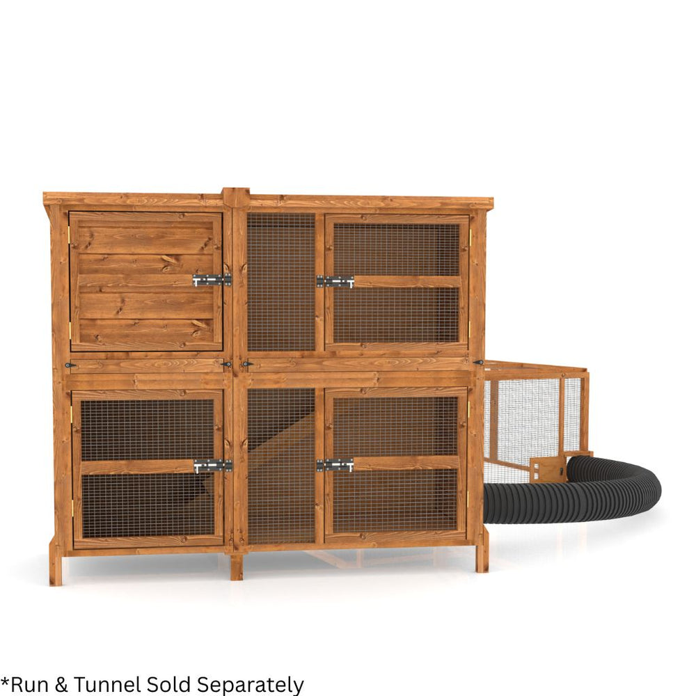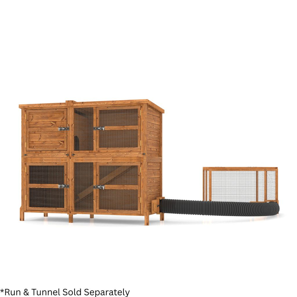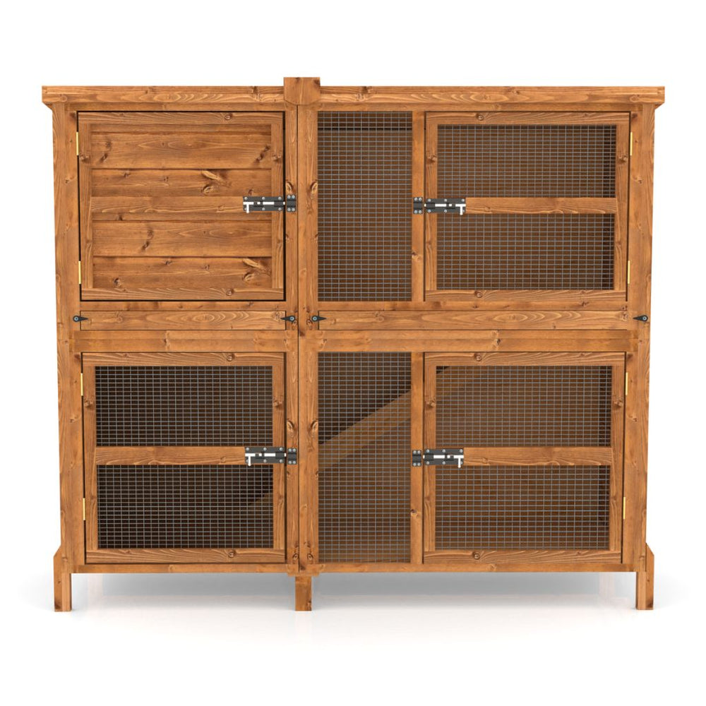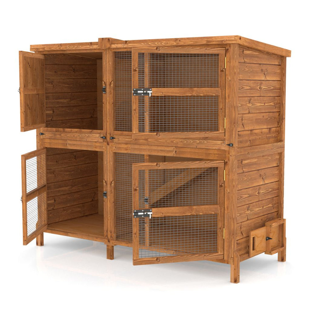 Experience ultimate comfort and safety for your rabbits with Britain's most spacious 5ft double hutch. Featuring a generous sleeping area, a sturdy ramp with side safety rails, and an easy-to-clean design. Built with robust timber panels and backed by a 90-day guarantee for your peace of mind.
