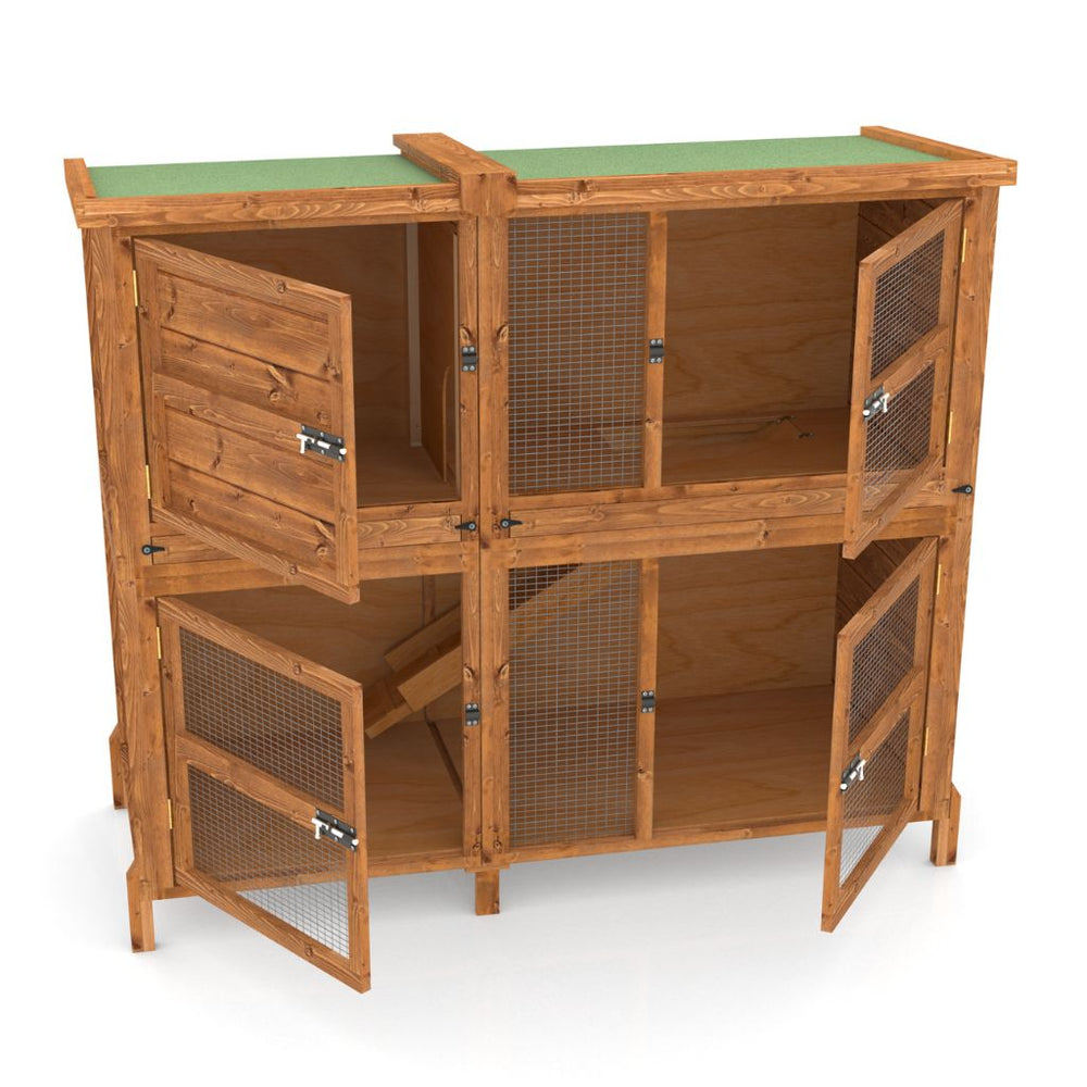 A Double Hutch or Cage is a pet house with two levels, one on top of the other connected by a ramp or stairs. A double hutch is perfect for animal lovers with more than one little friend to care for.