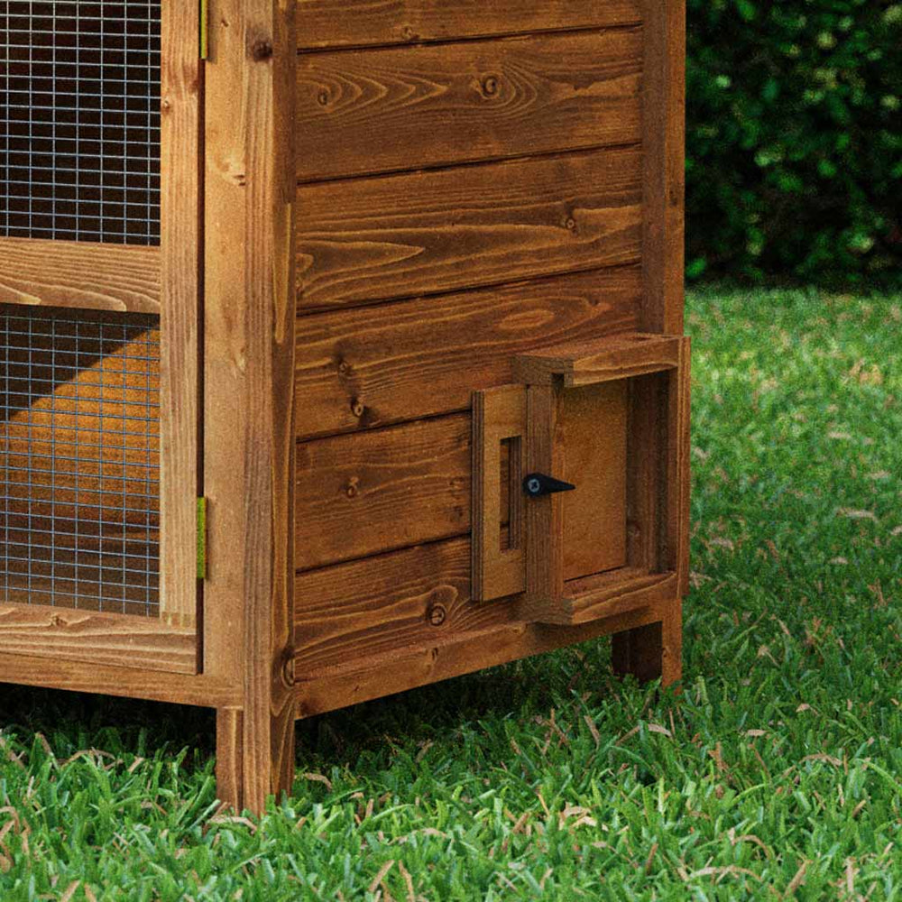 The hutch is built with 10mm thick Forest Stewardship Council (FSC) timber panels, making it extremely sturdy and durable. It’s designed to withstand different weather conditions, providing a safe and secure home for your pets year-round. Because we hand make all our own products if you ever need a spare part your covered under 5 year guarantee.