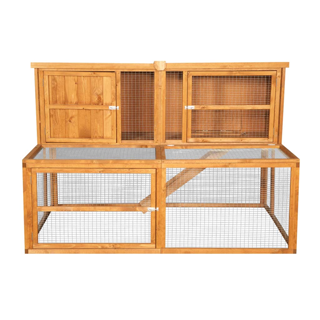 A Double Hutch or Cage is a pet house with two levels, one on top of the other connected by a ramp or stairs. A double hutch is perfect for animal lovers with more than one little friend to care for.
