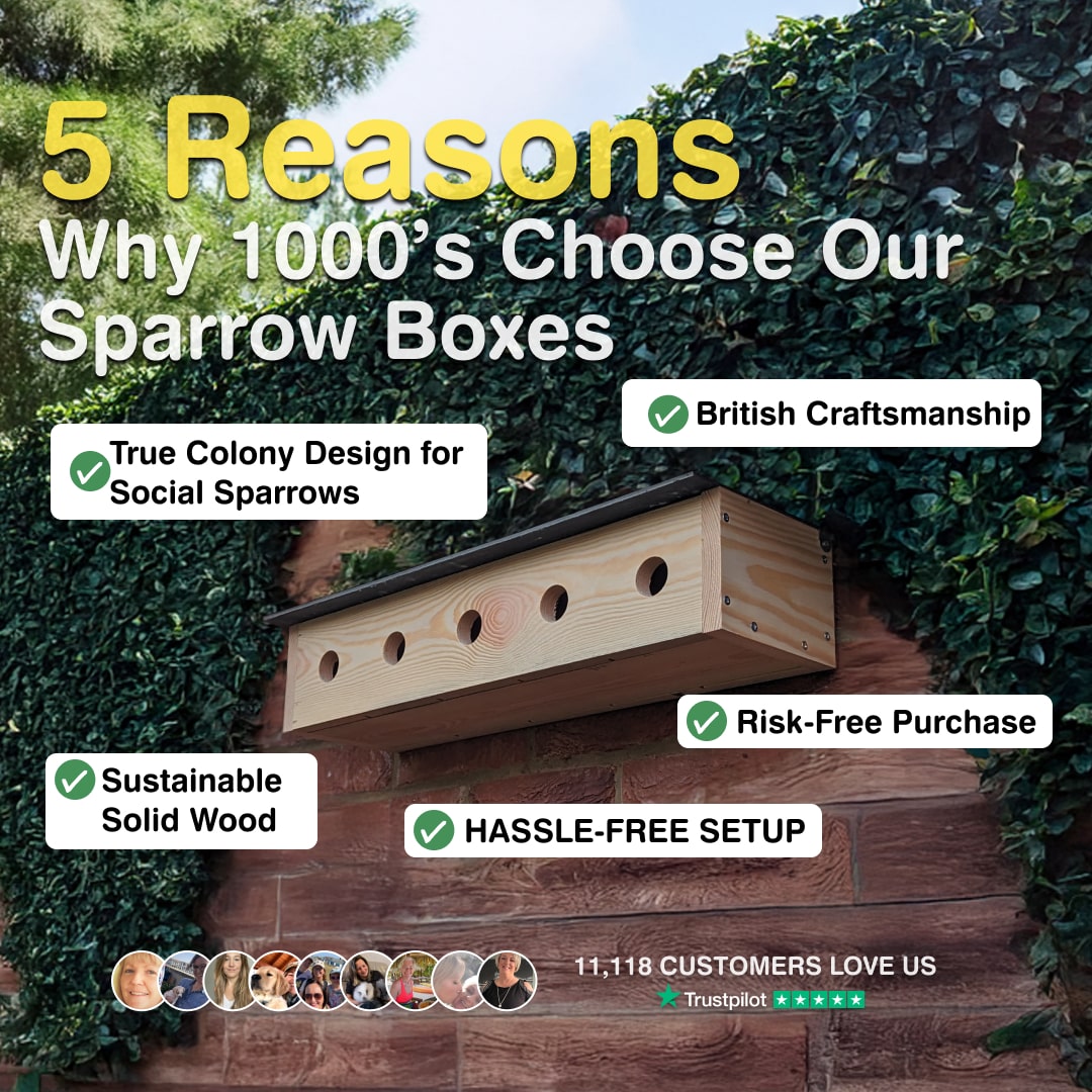 Give your garden birds the perfect home with our British-made sparrow nest box, expertly crafted to protect against harsh weather while supporting local wildlife. Our spacious colony design provides a safe, cosy nesting space that helps sustain declining house sparrow populations in urban and rural gardens.