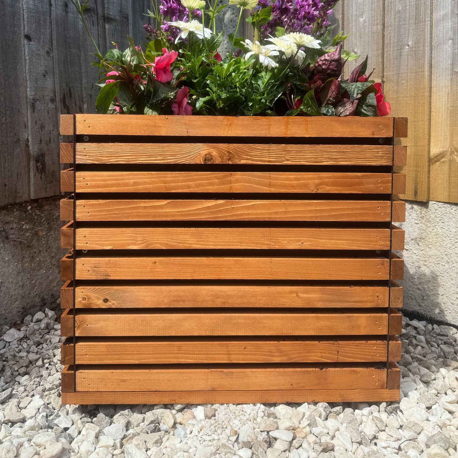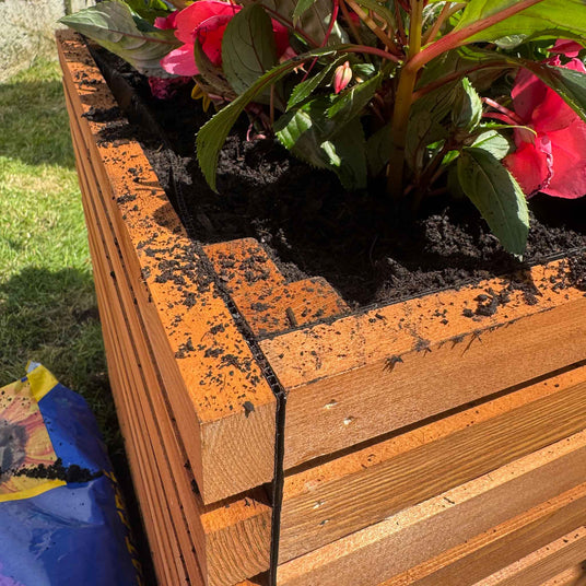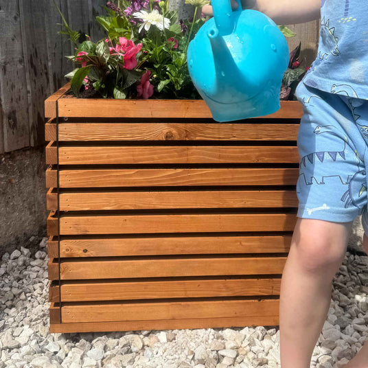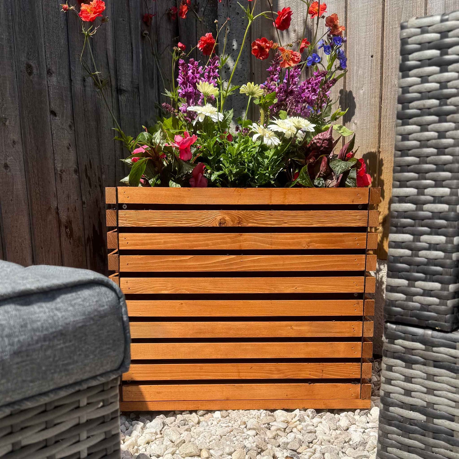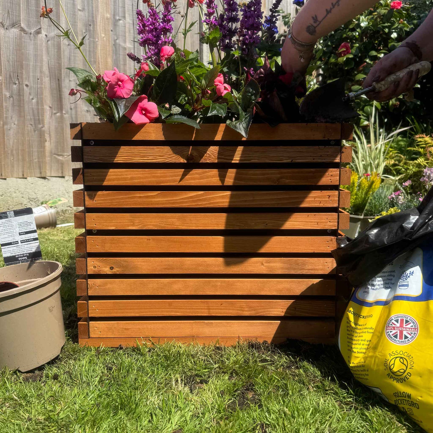 Our Sussex Planter is crafted from high-quality, pressure-treated wood and features our unique Timbac wood treatment. This combination ensures excellent durability and weather resistance, making it perfect for year-round outdoor use in the UK climate.