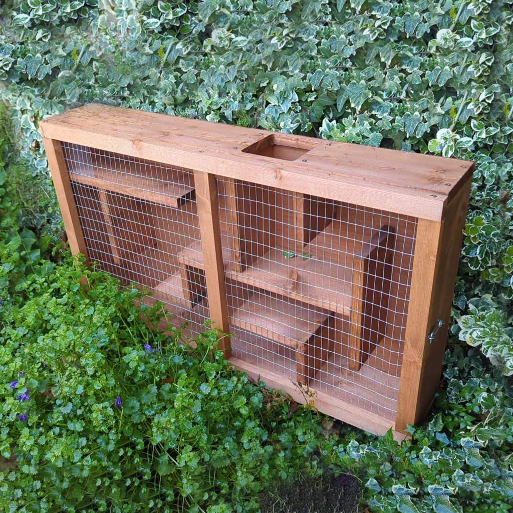 The feeder is handmade in the UK using sustainably sourced wood. By choosing this product, you support environmentally responsible practices while providing a safe feeding station for wildlife.