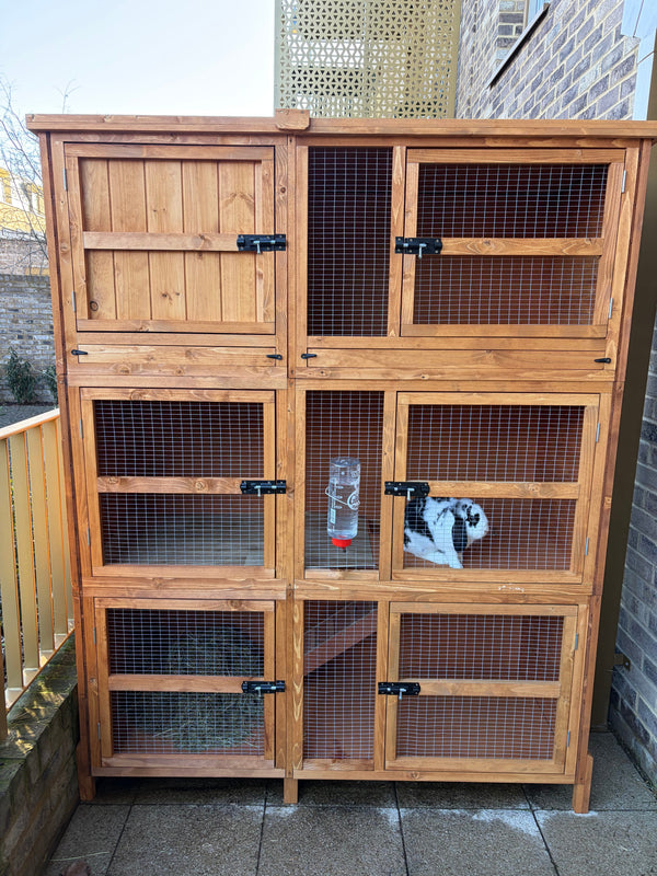 Hutch is beautiful and especially the design. Has allowed for me to keep my rabbits in a bigger hut outside and with three tiers, I have separated two of the rabbits that were fighting. Wish I knew of you guys earlier!
