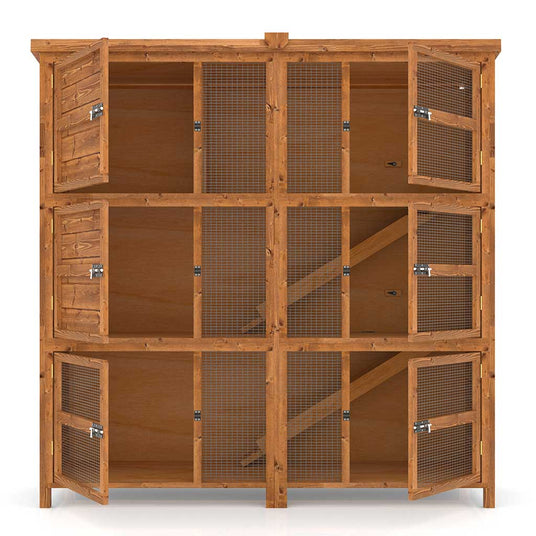 A Triple Hutch or Cage is a pet house with three levels, one on top of the other connected by a ramp or stairs. A Triple hutch is perfect for animal lovers with more than one little friend to care for.