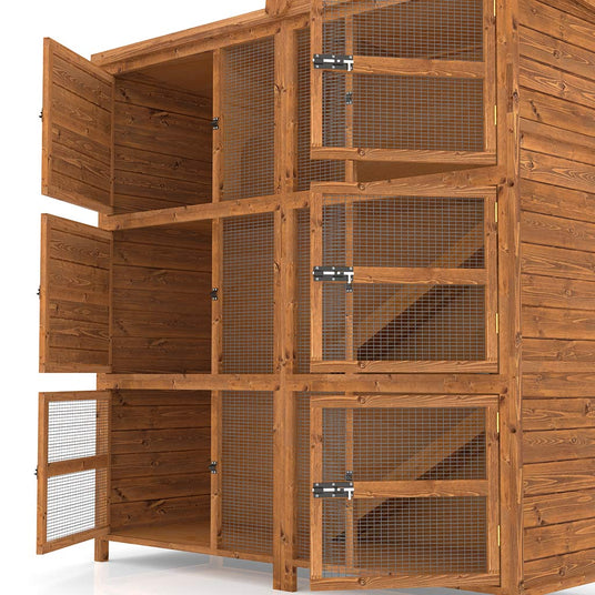 Discover the perfect blend of comfort and security with the Chartwell 6ft Triple Guinea Pig Hutch. This luxury hutch features three levels connected by ramps, which can be closed off for separation when needed. Now featuring a removable cleaning bar on the bedroom level—making clean-ups quicker and easier than ever!