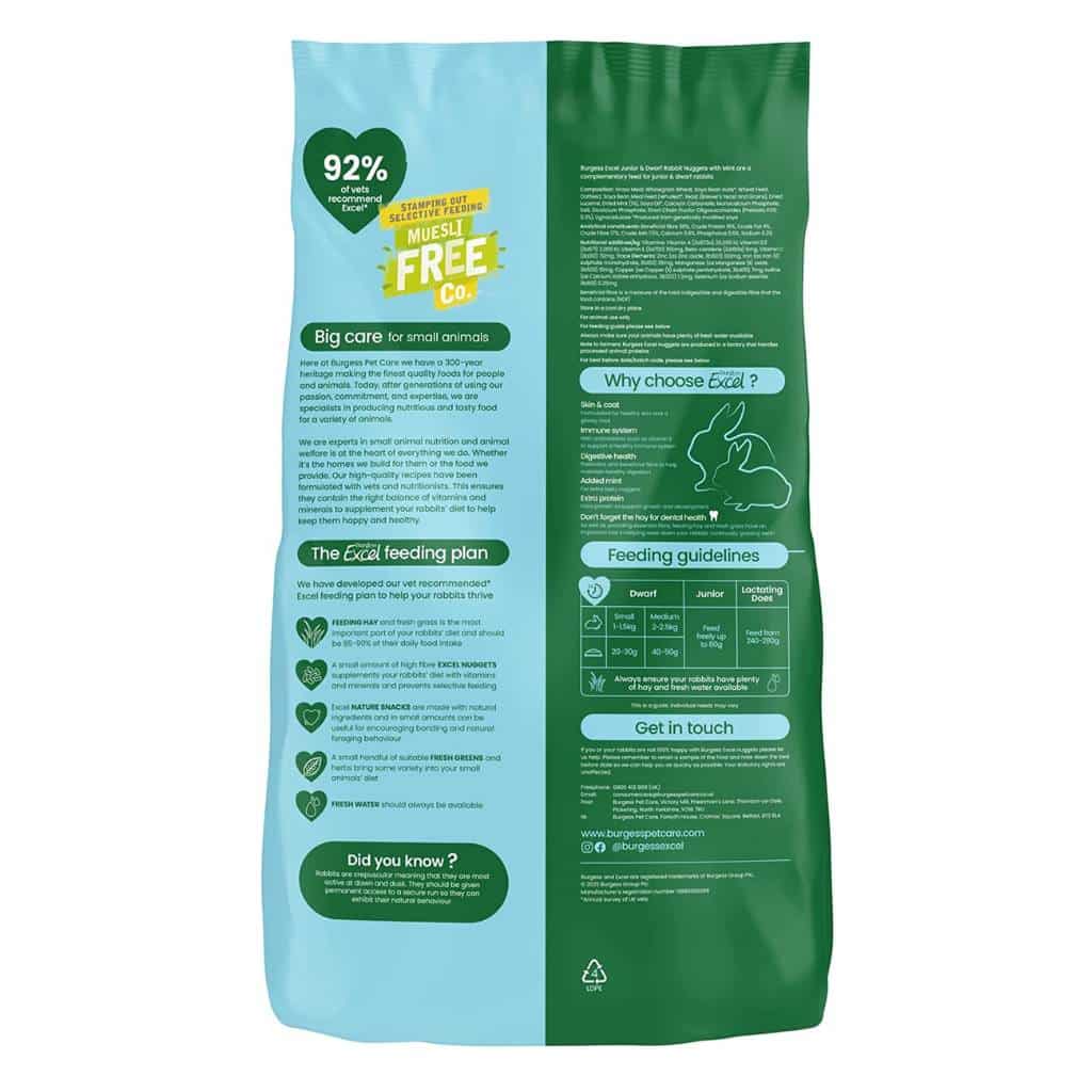 Burgess Excel Junior and Dwarf Nuggets with Mint Rabbit Food 1.5KG